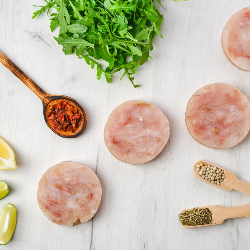 Hamburguesa de pollo de pollo fresco y de primera calidad. Seleccionado por Casa Peñafiel para ofrecer el mejor sabor y textura. Carne magra y versátil, perfecta para infinidad de preparaciones.