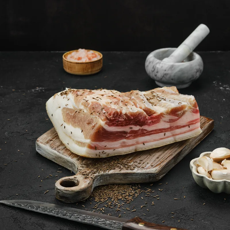 Guanciale de cerdo blanco de primera calidad. Seleccionado por Casa Peñafiel para garantizar la mejor textura y sabor. Carne fresca y versátil para múltiples preparaciones.