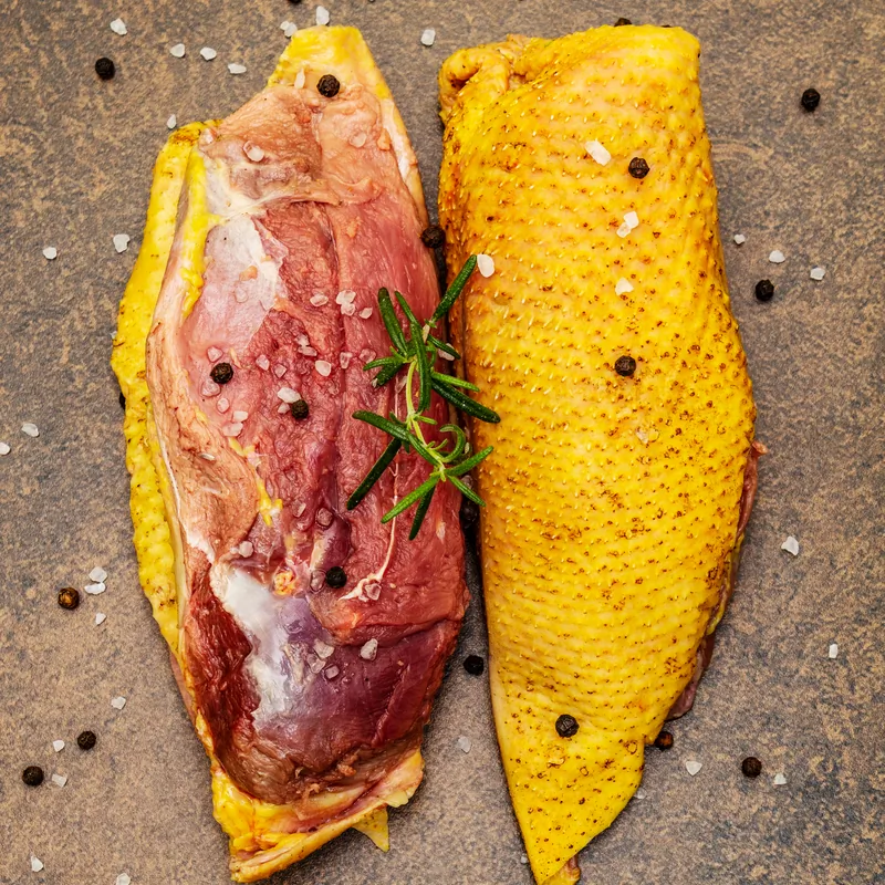 Magret de pato de primera calidad. Pechuga de pato cebado con una capa de grasa que le aporta jugosidad y sabor. Ideal para cocinar a la plancha, marcando primero por el lado de la grasa.