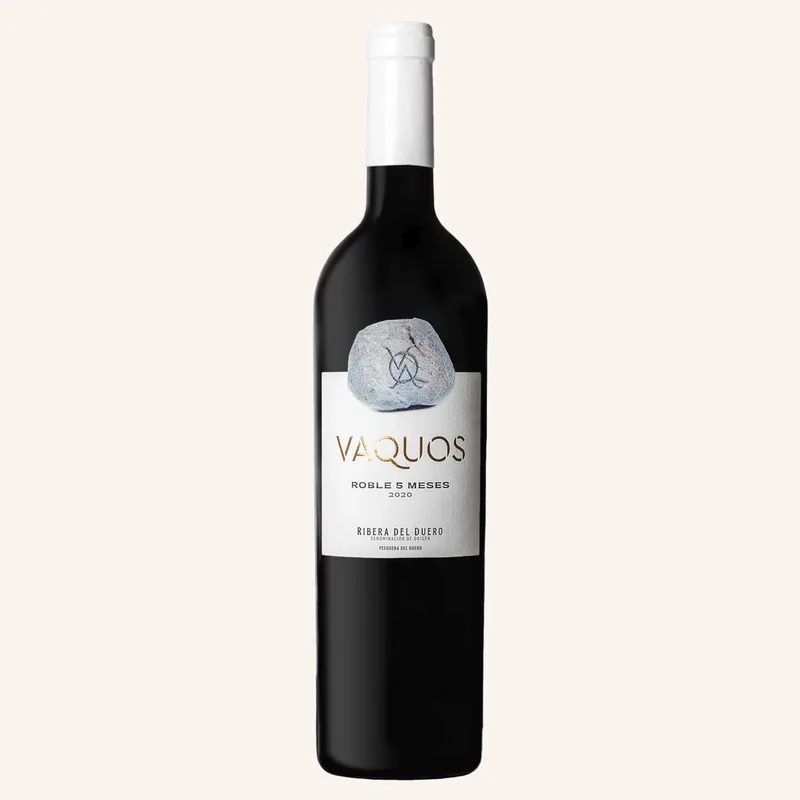 Vino tinto de Bodegas Vaquos, D.O. Ribera del Duero. Elaborado con Tempranillo 100%. Color cereza brillante. Aromas de fruta roja con matices tostados y especiados. En boca es suave, frutal, con taninos amables y final agradable.